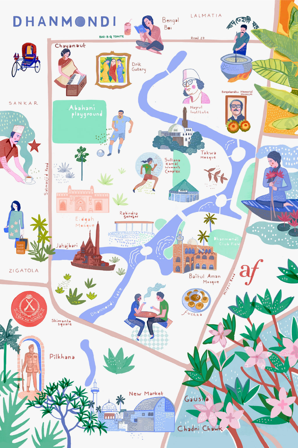 Postcard- Illustrated Map of Dhanmondi